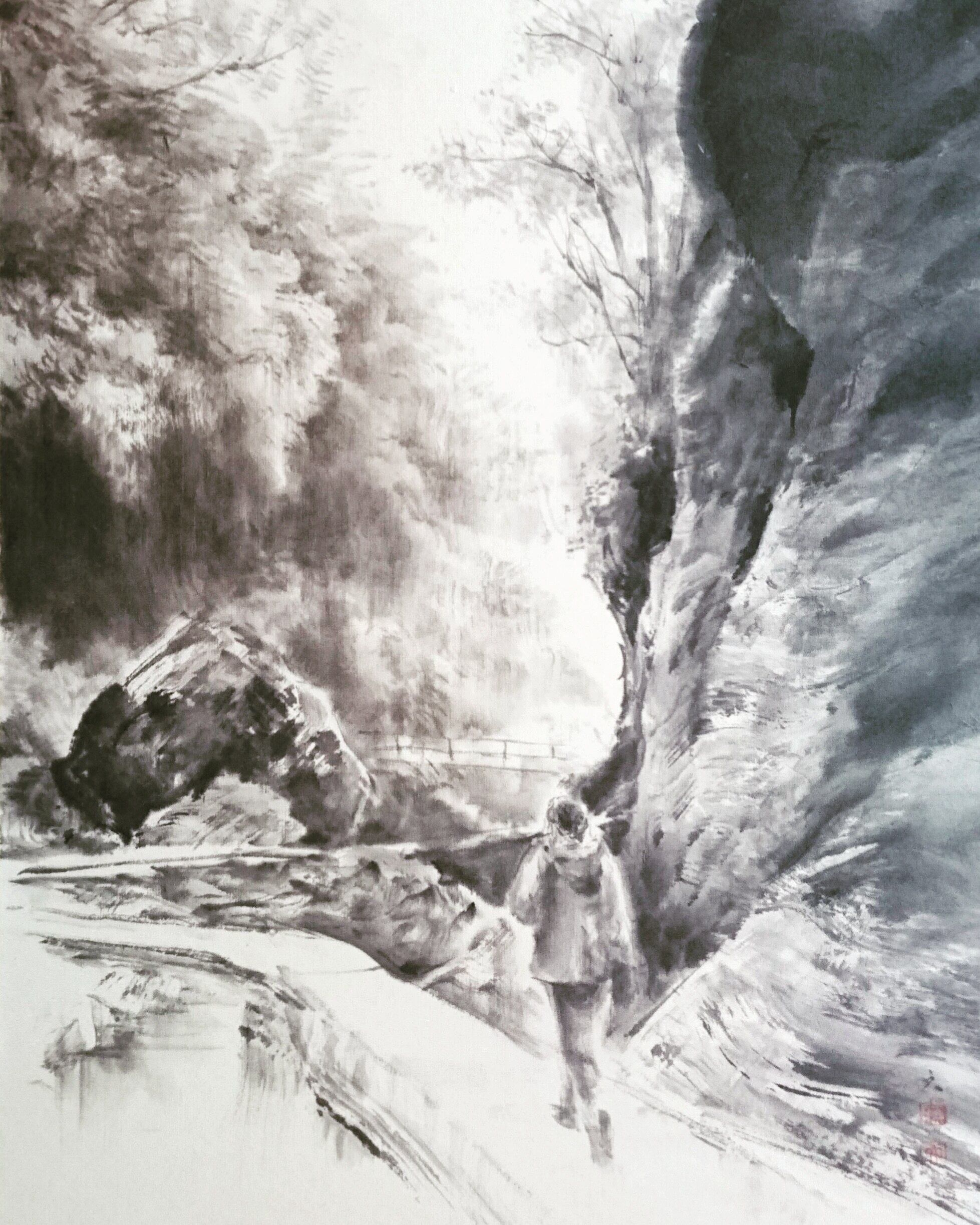水墨画家 藤原六間堂 肉筆 原画 水墨画 /