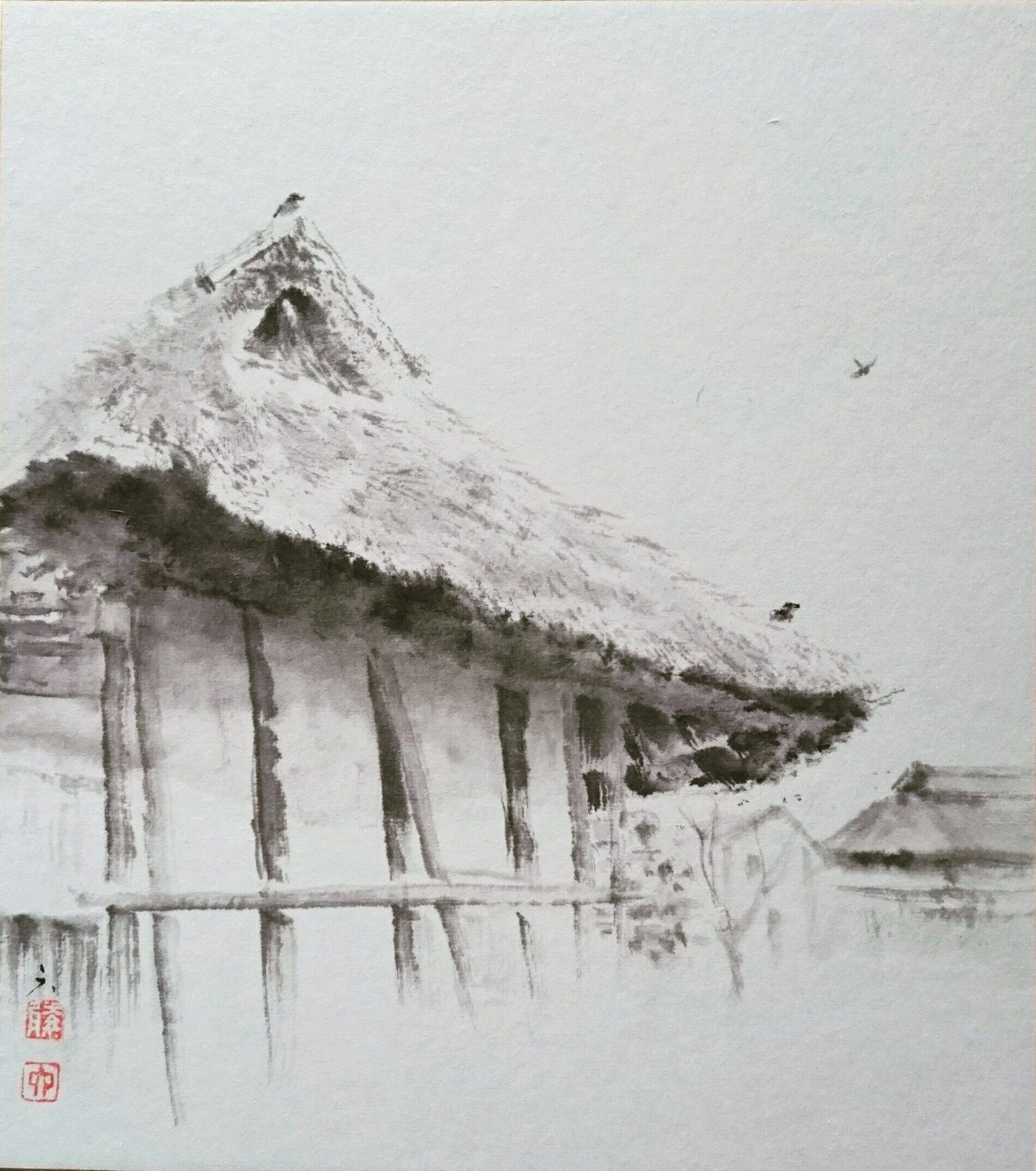 茅葺き屋根の上の鳥のさえずり / Birds chirping on thatched roof